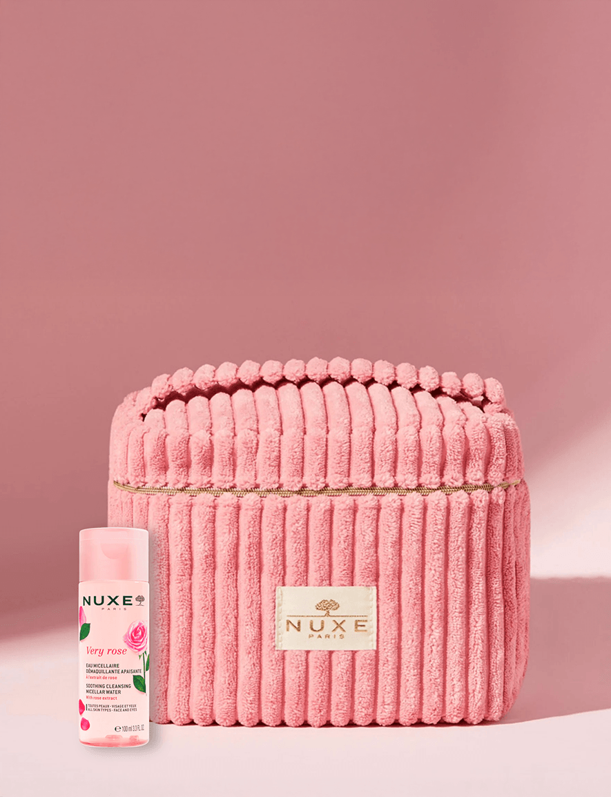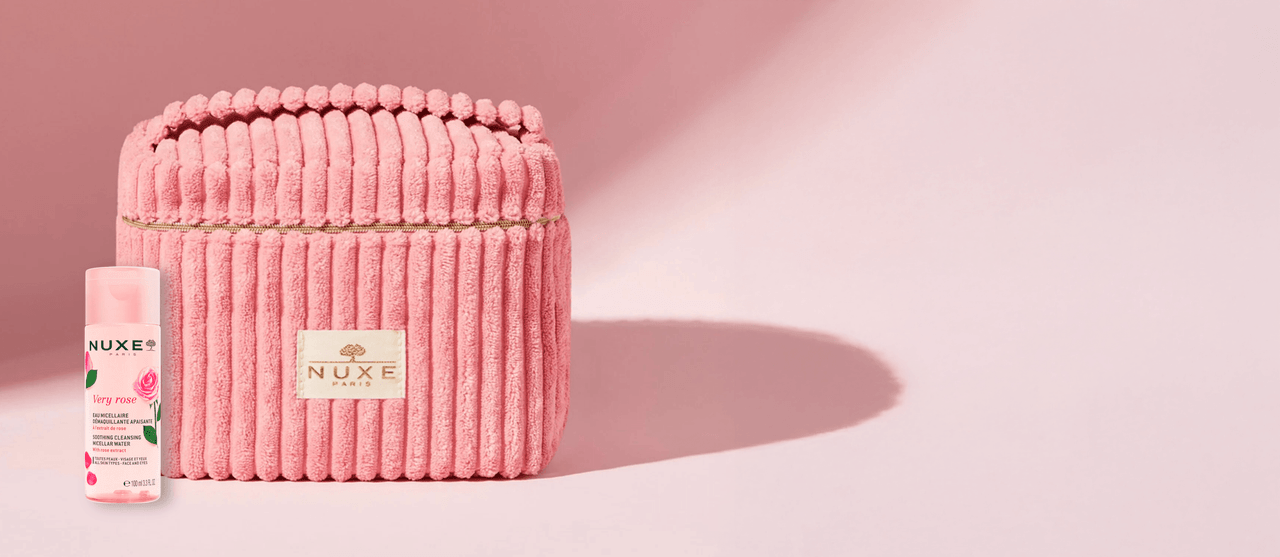 Spend $65 USD on NUXE to receive a free Pink Vanity Case & Micellar Water Duo. Includes a chic cosmetic bag and a rose-infused micellar cleansing water with 99% natural-origin ingredients.