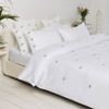 Made with 100% cotton sateen, this bed linen features the Elizabeth Scarlett signature golden bumblebee motif, delicately embroidered into a smooth 300 thread count base on a white duvet and pillow set. Designed to last for years, this premium bedding setting gets better with each wash. Ideal for adding a touch of decadence to your home, or perfect as a luxury gift for someone special, this hotel inspired linen is a must-have!
