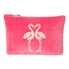 A beautiful cotton velvet mini pouch featuring an intricate flamingo thread design, in a unique stylish blush pink shade.