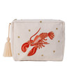 Designed by Elizabeth Scarlett herself, this unique lobster design was inspired by windy weekends by the sea, with a quirky character, striking red suit and blue beady eyes, the lobster is offset by the twinkly golden stars on the creamy velvet base. With a water resistant lining for makeup mishaps or spills, this bag is durable and suitable for so many uses!
