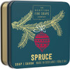Scottish Fine Soaps Spruce Soap in a tin is a triple-milled, vegan-friendly, paraben-free luxury soap. Spruce has a soft fresh fragrance with notes of pine, frankincense and pepper with a base of amber, labdanum and musk.